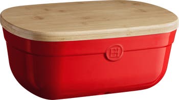 Elegance and function converge in our Emile Henry Bread Box, meticulously designed to create an environment that harmonizes humidity for a soft bread interior and ensures proper air circulation to maintain a crispy crust. Our spacious yet compact design offers ample room for airflow while neatly fitting onto any countertop. The wooden lid, smooth on top and grooved on the cutting side, effortlessly collects crumbs during slicing, adding convenience to its charm.