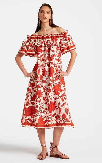 The name says it all with this dream dress from our collaboration with Orlebar Brown, the most sophisticated summerwear brand (in our totally unbiased opinion). It's the dream dress you don after tumbling out of bed at your Sicilian villa for an oceanside espresso. Off the shoulder ruffles add romance to this easy silhouette, cut in our breezy, soft cotton poplin for high summer sojourns along the coastline. This sweet summer staple is the perfect base for added bling, and is as ravishing on our petite beauties as it is our leggy LDJ ladies.