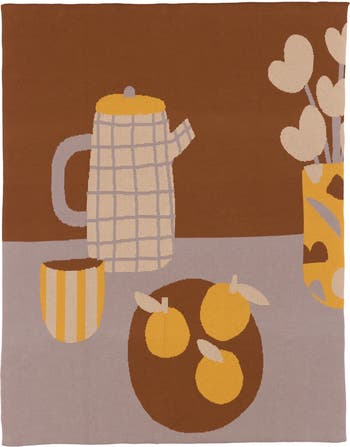 Jennifer Bouron captures domestic calm with a coffee pot and still-life elements that invite slow morning moments. Cozy and artful in natural cotton. Machine wash on cold and tumble dry on low for easy care.