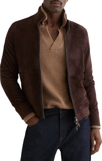 This versatile suede jacket is all about contrast: velvety to the touch, razor-clean in attitude. Sleek hardware slices through the surface with precision, while ribbed trim frames the silhouette with just enough structure. Inside, a sleek lining slides on easily over layers.