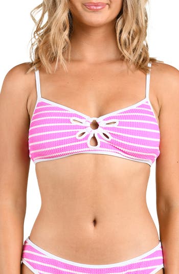 Wavy ribbed fabric brings lively texture to this sporty bikini top featuring a center ring surrounded by petal-shaped cutouts.