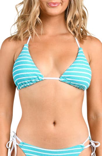 Wavy ribbed fabric brings lively texture to this classic triangle bikini top cinched with contrast straps.