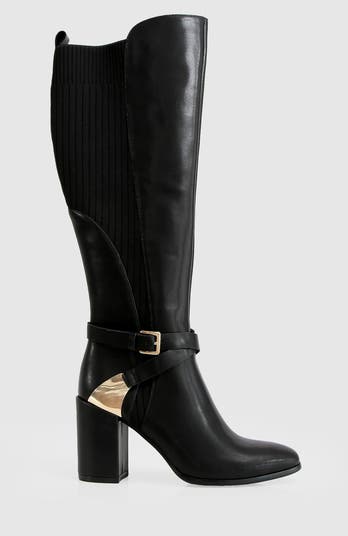 Polished gold hardware, slender leather straps and ribbed panels add an equestrian edge to the Breton Knee-High Boot in smooth leather with the perfect height heel to take you comfortably from day to night.