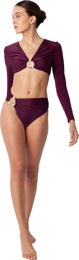 Adorned with beading trim and alluring ruching, the new Bria Bikini Bottom exudes a luxurious, high-end aesthetic. For a complete coordinated look, pair it with the matching Bria Bikini Top.
