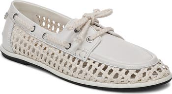 An open woven profile gives an airy fit and feel to a boat shoe crafted from smooth leather to elevate everyday looks.