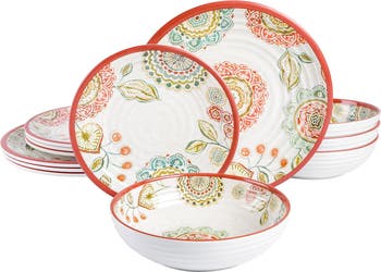 Brick Floral Ripple 12pc Melamine Dinnerware Set