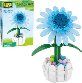 Bricktanicals Blue Sunflower in Picket Fence Pot Building Set