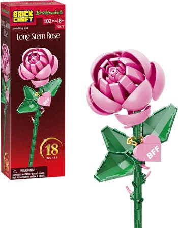 Construct a charming gift with our Pink Long Stem Rose Brick Building Set. Create lastingmemories while assembling this eternally fresh flower for that special someone. Find the perfectmessage with 4 interchangeable stickers on the brick heart pendant, located just below theradiant pink petals. This symbol of affection adds charm to any room, allowing you to celebrateyour partner with a beautiful botanical gift.