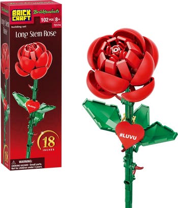 Construct a charming gift this season with our Red Long Stem Rose Brick Building Set. Create lasting memories while assembling this eternally fresh flower for that treasured person. Find the perfect message with 4 interchangeable stickers on the brick heart pendant, located just below the radiant pink petals. This symbol of affection adds charm to any room, allowing you to celebrate your partner with a beautiful botanical gift.