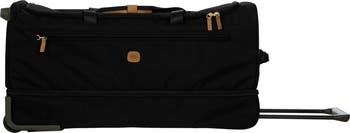 The X-Collection two-wheeled duffel bag is designed to provide maximum lightness, equipped with all the necessary features to face any trip with complete ease, without overlooking style. Made of soft recycled fabric, it is lightweight, sturdy and water resistant. EXTERIOR: zipped side pocket, spacious main compartment and additional hard compartment that is ideal for shoe storage. HANDLES: the pull handle can be secured at various heights, and concealed when not in use. The two handles with button closures provide easy lifting. INTERIOR: The main compartment features a zipped side pocket for smaller items, and the two clothing tie-down straps can be used to secure garments and reduce creases. The rigid compartment is accessible by an internal zipper. WHEELS: two high-quality wheels, with supporting feet. DETAILS: enhanced by Bric's signature genuine leather details and soft fabric lining.