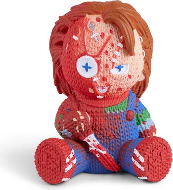 Approximately 5 inches tall and perfect for display or play Our friendly robots designed this figure to look like knit fabric at a glance, but it’s actually made of vinyl Signature vinyl tag on the figure, complete with barcode decal to resemble a sewn-in tag Bloody Chucky never looked so unique! What is Handmade by Robots? Ambulatory biological units like yourselves require warmth and soft embraces. We robots know not of such things. Our best approximation is thus enclosed the appearance of interwoven organic fibers into recognizable characters from your pop culture, though made of solidified polymers. Our research indicates they would be given and received as gestures of friendship and love. May your acquaintances find value in such meaningless activities.