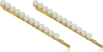 A luminous row of imitation pearls lends undeniable elegance to these special-occasion hair clips.