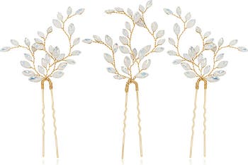 Evoke the elegance of delicate ivy in full bloom with this hand-painted trio set of bridal-ready sterling silver hairpins glittering with Austrian crystals and plated in 14-karat gold.
