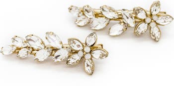 Shimmering marquise crystals and luminous opal orbs arranged as a blooming branch adorn hair pins that will perfectly highlight your bridal hairstyle