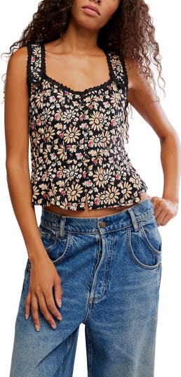 This corset-inspired stretch-cotton top gets retro appeal from its floral-lace trim, adjustable button straps and pintucks. It's got a slightly cropped hem made with pleats that create a softly flared peplum.