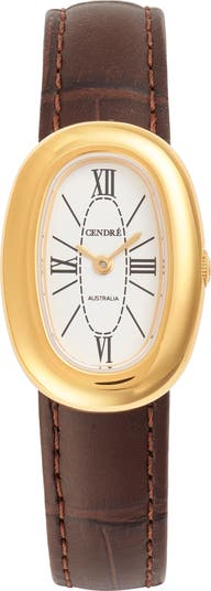 Bring an elegant and timeless touch to your wrist with this oval-case watch designed with a Roman-numeral dial and a soft leather strap.