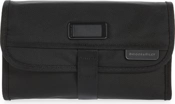 Trifold hangable kit of ballistic nylon has a slim, compact design perfect for organizing your travel essentials while taking up minimal space in your luggage. This kit can conveniently hang from a door by converting the wrapping strap to a loop for easy access to contents.