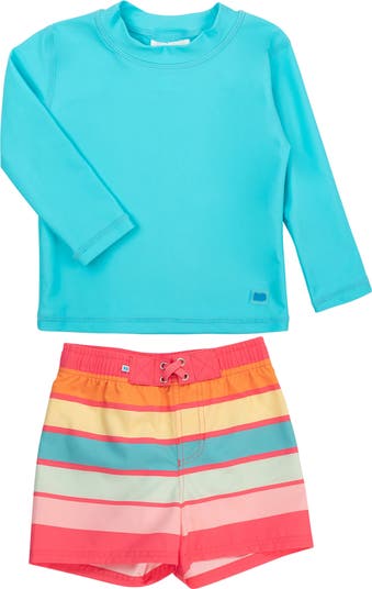 Get baby ready to splash and play in this swimsuit featuring a protective long-sleeve rashguard and coordinating trunks.