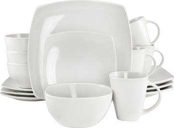 The Gibson Elite Sogo Lounge Bright Shell 16 Piece Dinnerware set is perfect for both fine dining and every day meals. This set is designed with a modern square shape and finished with a warm white color that will go with most home decor styles and motifs. Outer matte finish and inner gloss finish add a touch of style to this set. Constructed of durable stoneware, each dish is dishwasher and microwave safe for long lasting use and easy cleanup. Set up your dinner for success with the Soho Lounge Bright Shell Dinnerware set!