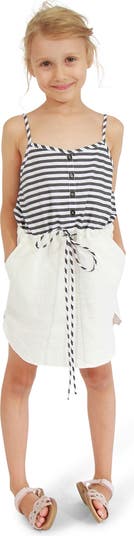 The Bright Side Striped Mini Dress is a chic and playful piece that effortlessly blends comfort and style. Featuring a cotton top with bold black and white stripes, it offers a soft and breathable fit, perfect for warm days. The linen skirt brings a lightweight, airy feel, making it ideal for casual outings or beachside adventures. Designed with adjustable shoulder straps and a flexible waistband, this dress ensures a comfortable fit. Whether she's exploring the outdoors or attending a family gathering, this mini dress adds a touch of effortless elegance to her wardrobe.