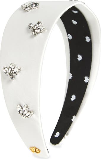 Hand-embellished round- and marquise-cut crystals light up this modern headband designed to resemble a folded scarf that's wrapped around your head.