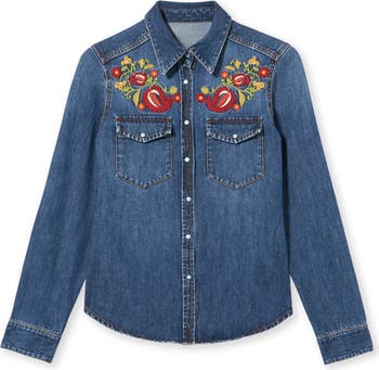 Fortela Brigitter Embroidered Denim Shirt, Main, color, Multicolor