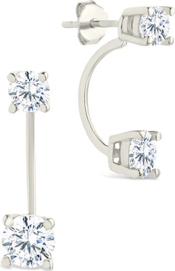 These sterling silver drop earrings punctuate your lobe in shine with brilliant-cut cubic zirconia and a dangling front/back design.