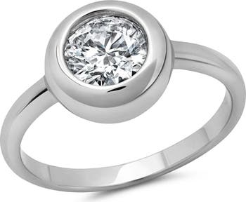 Hand set in a sleek bezel setting, a brilliant-cut cubic zirconia brings luminous sparkle to this sterling silver ring plated in gleaming platinum.