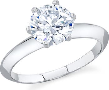 Platinum plating adds a shiny finish to a lovely ring housing a single brilliant-cut cubic zirconia.