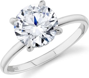 A single brilliant-cut cubic zirconia brings bold sparkle to this timeless ring plated in high-shine platinum or 18-karat yellow gold.