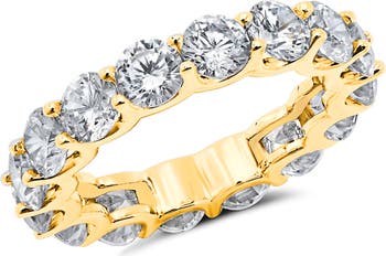 This eternity ring hand set with round-cut cubic zirconia wraps your finger in brilliant shine