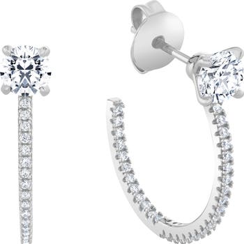 Pavé cubic zirconia sparkle from the inside out of these huggie hoop earrings topped with a brilliant-cut stone.