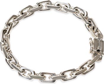 LOUPN Bring It chain bracelet embodies sexy from head to toe. Bold polished chain links give you an edge where in this case, more is more. The rounded asymmetrical sterling silver chain links brings confidence. Prepare to be seen. | o AG 925 Sterling Silver o Thickness: 7 mm o Finish: Polished o Open box closure o Nickel free o Handcrafted in Korea XS is approx. 18 cm in length S is approx. 19 cm in length M is approx. 20 cm in length L is approx. 21 cm in length