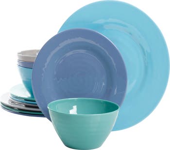 The Gibson Home Brist 12 piece melamine dinnerware set features four assorted colors - blue, gray, chameleon and periwinkle blue - bringing a fun vibe to everyday dining. All pieces are made of chip-resistant melamine which makes them great for everyday use. This set is also great for outdoor activities such as picnics or camping. Bring this set home today!Set includes: Four Dinner Plates 10.5 x 10.5 x 0.50 - 30ozFour Salad Plates 8 x 8 x 0.50 - 24ozFour Bowl 6 x 6 x 3 - 6ozThe bowls have 20oz or 2.5cups liquid capacityFeatures:* Made of durable, chip resistant melamine* Comes in four assorted colors * Dishwasher safe (top rack)* Not microwave safe