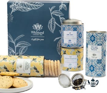 A timeless treat for tea lovers, this beautifully curated gift box features two of Whittard’s classic loose leaf blends—English Breakfast 4.9oz and Earl Grey 3.5oz—each presented in a signature caddy. Paired with all-butter shortbread 5.2oz and a delicate Earl Grey-infused biscuits 5.2oz , it’s a perfect balance of traditional brews and buttery indulgence. The set also includes a loose leaf tea infuser for effortless brewing.