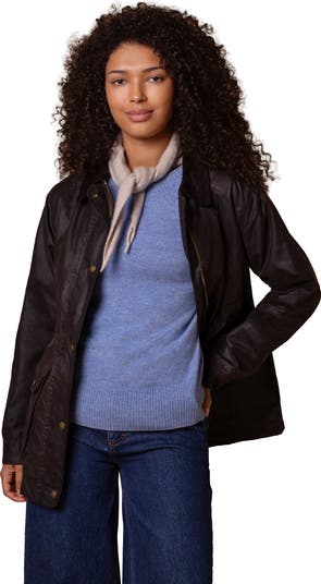 Made in Britain, the hip-length Waxed Cotton Zip Through Jacket features a stylish corduroy collar and an internal drawstring waist detail for a customized fit.