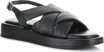 Wide, interlocking straps bring dimension to a slingback leather sandal set on a cushioned footbed and subtle platform sole.