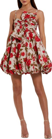 Multicolor Brocade Bubble Skirt Mini Dress with Bow