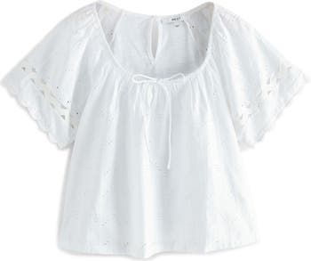 NEXT Broderie Boho Short Sleeve Rickrack Cotton Top