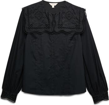 Delicate broderie detailing adds to the charming old-fashioned look of this button-front shirt made from pure cotton.