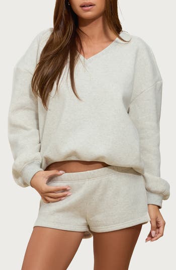 Get cozy on chilly days in this V-neck pullover sweatshirt cut from a soft cotton blend in a slouchy, cropped silhouette.