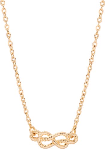 This hand-polished bow pendant necklace brings plenty of texture and shine with its rope-like twists and plating in warm 14-karat gold.