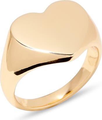 Bring overwhelming romance to the classics with this 14-karat gold-plated signet ring featuring a sweet heart-shaped face.