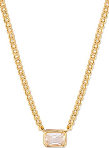 Personalize your everyday ensemble with this curb-chain necklace that suspends a cubic zirconia charm colored to match your birthstone.