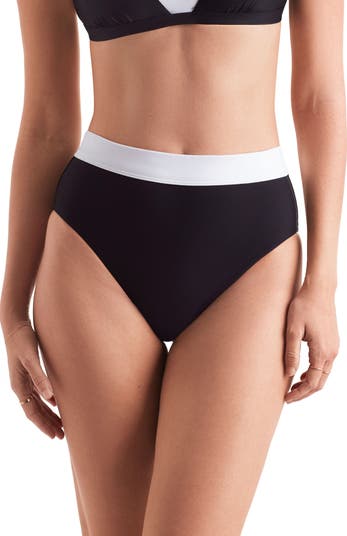 Take a dip in these stretchy swim bottoms made with a smoothing high waist and sleek contrasting trim.