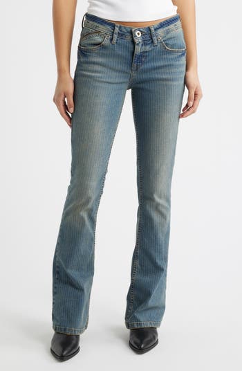 Full of Y2K vibes, these flared pinstripe jeans feature a low-rise waist, full-length legs and a bit of stretch for a comfy fit.