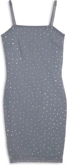 Double Mesh with rhinestone studs. Adjutable Straps. Ruched sides. Lined. Stretch fit.