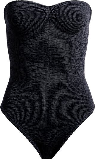 Signature seamless crinkle stretch fabric—which is knit and dyed locally to reduce emissions and waste—contours and flatters curves in this one-piece swimsuit.
