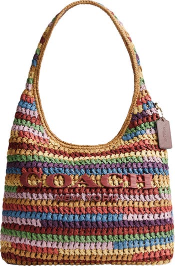 Woven multicolor straw and a tonal logo update the classic silhouette of this shoulder bag furnished with a spacious interior perfect for storing your daily essentials.