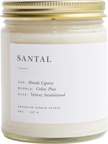 Santal: A sultry masculine blend of earth and woods. Hinoki Cypress floats above a rich heart of cedar and pine over a warm base of vetiver and sandalwood.